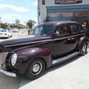 1940 Super Deluxe suicide door sedan, NO RUST no rust repair. Collector owned with only 3,960 miles since a total frame off restoration, powered by a crate 350 V8 teamed up with a turbo 3 speed automatic, Mustang 2 rack and pinion front clip, Camaro rear end, leather interior, tilt wheel, air conditioning, original dog dish hub caps, new tires, modern CD in glove compartment and much more. It is finished in Vivid Plum with Lt Tan interior. This one of a kind 40 Ford runs and drives great, powerful, safe, dependable and way too cool. This car can be driven anywhere in full confidence. #36919. Now on display at the home of “over the top cars”CHECKERED FLAG CLASSICS 7743 MONTEREY ST GILROY, 408-847-8788, or 888-625-2774, sold as-is, California buyers are responsible for sales tax and license fees. Buy with confidence I am licensed bonded California dealer.