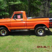 1975 Ford F-100 4x4 Short-bed Pickup Vin: F10YNW84499A complete ground-up/bed-off 5 month restoration has just been completed on this highly collectable classic Ford pick up. Exterior done in 1975 Ford color of "Flame Orange" with accenting grey & black interior.