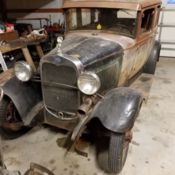 A great Ford 4+ passenger Model A town sedan that awaits family fun, parades and back road touring. Burgundy and black with red trim and wheels. Original body and mechanicals with vintage tan mohair interior. Same loving owner for past 25 years. Garage kept.6 wide white wall tires including 2 side mounts with rear view mirrors. Paint and chrome look great. New leather strapped trunk on wood slatted luggage rack but old metal trunk is still available, if preferred. Recently checked by classic car mechanic: new battery, and carburetor cleaned. Engine strong, runs and drives like a Model A Ford. Crankshaft included. Miscellaneous spare parts and manuals also included.