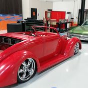 *Best Offer* ALL NEW PARTS 1937 Ford Roadster Hardtop Convertible. Clear 1937 Title. PROFESSIONALLY BUILT. running driving Hot Rod. powering this Street Rod is a new Chevy Crate Performance 350cu. in. (projected 360 hp) 4-bolt main small block. this standard block was dyno tested for reliability before I stripped it completely down leaving only the crank and pistons (this combo is still sufficient for new horse power and staying w/pump gas). I next prepped/painted block engine black (semi-gloss). the engine upgrade started with a Edelbrock RPM Performer Cam (moderate idle lope) and matching flat tappet hydraulic lifters. Edelbrock Accu-Tune gear-drive set is connecting the crank/cam for precision timing (gear drive does not have "blower-loud" whine sound but mild whine which sounds great!). New performance harmonic dampner. rounding out the valve train is 0. 100" taller hardened pushrods. new Speedmaster 1. 5 ratio 7/16" red aluminum roller rockers w/dual locks. covered by polished fabricated aluminum valve covers w/chrome element breathers. topping the combustion chambers are polished Pro Comp 190cc 64cc aluminum cylinder heads w/. 610 lift dual springs. hardened 7/16" rocker studs & push rod guides. ARP hardened head bolts and Fel-Pro head gaskets keep this unit clamped securely. Edelbrock polished aluminum RPM Performer air-gap intake manifold w/ARP stainless 12 pt. hardware and Fel-Pro intake gaskets complete the top end. engine also features billet aluminum ready-to-run distributor & high energy square coil. Taylor Spiro 8. 5mm custom length black plug wires & new Champion spark plugs. polished billet aluminum timing chain cover (clearance correctly for gear drive). billet timing tab. billet Aluminum Alt. & A/C comp brackets. 5-groove billet aluminum serpentine pulley system complete with Tuff Stuff chrome reverse flow water pump and optional P. S. pulley. chrome 100 amp 1-wire alt. . polished aluminum Sata A/C compressor. mixing air/fuel into this motor is a 650cc Mighty Demon 4-barrel carb. w/vacuum secondaries & electric choke. fuel system is a Edelbrock Performer fuel pump. -6 XRP fittings w/3/8" aluminum hard lines. -6 stainless braided soft lines and threaded in-line GM fuel filter. Bob Drakes reproduction gas tank w/external breather. sealed gas cap w/custom fill neck (measured for 1/2" protrusion after trunk interior). coolant flows green in this aluminum radiator and Flex-Lite electric fan/shroud w/180degree thermostat keeps the temperature under control. fabricated steel/hard radiator pipes. nbsp; new SFI cert. 168-tooth flywheel. Hitachi mini torque starter keeps this motor turning. allowing this engine to breath is a set of jet coated Sanderson straight plug style block huggers. dual custom hand TIG 2 1/2" mild steel exhaust (which is fully welded. pics show fab stage only) flows through the chassis with no touching other components (no rattling or "performance dimples" used). 2-chamber Flow Masters keep this exhaust "throaty" (moderately loud). new 700 R4 trans. with new stall converter & shift kit. 4th gear lock-up pedal switch. stainless braided Lokar dipsick/TV cable and stainless linkage. new speedo housing w/correct speedo gear keeps this transmission under control. new 3" O. D. drive line made with HD u-joints and new yokes (drive line polished/clear coated so it will stay that shinny). Ford Explorer 8. 8 differential w/3. 55 gear ratio is fresh and leak free. nbsp; 4-wheel disc brakes. new master cylinder w/6" brake booster. -3 XRP fittings w/3/16" stainless brake lines. Wilwood 2lb. residual valves. Wilwood proportioning valve. new XRP stainless braided brake hoses w/front polished thru-frame fittings. new calipers with new hardware & brake pads clamp firmly to all (4) new 11" big rotors. the chassis is brand new custom tubular cross brace. boxed/shaved frame rails. TCI front end removable trans. x-member. painted chassis black. suspension is Mustang II front with tubular a-arms. 2" drop spindles & billet Shock Wave airbags. complete w/functional front sway bar. triangulated adj. 4-link (no wheel side/side motion while traveling up/down. important in air bagged cars). rear billet adj. Shock Wave airbags keeps the ride height very comfortable. air tank & compressor are mounted securely in the trunk area. along w/billet Optima Red Top battery & 1/0 cables w/removable cut-off switch. Mustang II polished manual rack. Flamming River 3/4" DD shafts & joints attached to a chrome Flamming River 2 3/8" tilt steering column & shifter (column is adj. correctly for a range of different seat/height combos while still letting your legs move without interference even w/shifter in low gear). the leg room is great since I am 5' 11" and can completely stretch my legs out to the side of the pedals. yet a person 5' sat in it and adjusted the seat/steering wheel and felt comfortable (rare in Hot Rods). wood grain Grant GT steering wheel is very comfortable in your hands. this is a Wild Rod Factory fiberglass body w/suicide doors & Bear Claw latches. body is in red gel-coat and is in good shape. the doors. fenders. panels. roof. dash have all been adjusted. there is final frame gasket material already in place and all body bolts are tight. this is a practically shim-free car. gaps are very symmetrical. I only have shims in the front engine side panels (which are stamped side specific) and running boards (which I have written down how many each bolt hole takes). this body does NOT have reamed out holes. meaning all body bolts are same size and fit only one way (great for accurate assembly over and over again with out adjustment). Wild Rod Factory polished stainless grille and Bob Drake headlight kits w/buckets. signal lights. lens & stainless rings. trunk and hood hinges are fabricated just need to be attached to panels as well as the roof anchors. body feature full interior cage for stability (critical for convertible) and floor bracing mounted to the frame for maximum seat support (