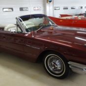 The name Galaxie was originated as a way to connect the car with the excitement of the space race. 500, and 500XL denoted higher trim levels with Ford stating that XL stood for "Xtra Lively" in their advertising. This '64 is a nice hybrid of survivor elements that are pretty cool and some nice upgrades. A fresh paint job, some new vinyl in the interior and a couple new pieces of chrome look good and make it comfortable inside. Especially from the side you can see the rocket like shapes that connect this car to the space program. The outer headlight ring spills over onto the side of the front fender and from there looks like it has a rocket trail from a liftoff running all the way down the side. Galaxie 500 XL appears in the chrome of the front fenders and little rocket stabilizers grace the tops. Up front, a newer chrome bumper looks good leading the way with a sculpted aluminum grill that contains quad headlights trimmed in chrome above it. Aerodynamic improvements were made to help the NASCAR teams be more competitive with the car in the form of a redesigned windshield and especially in the "fastback" roofline. The car has a nice rake to it accentuated by the Weld Racing wheels with staggered tire size, and the back of the car has the round taillights that look so great on the Galaxy along with another fresh bumper that shines bright. The interior shines bright too dressed up in fresh Red vinyl. The door panel has a pleated upper, smooth lower, and a bold polished aluminum center panel where the armrest is mounted. The pleating is continued on the seats in a pattern that meets in the center to created deep buckets surrounded by smooth panels with splashes of chrome along the bottom back. The steering wheel is wonderfully original and imperfect with an XL center button and establishes the survivor tone of the details in the interior. The dash pad itself has been replaced, but the rest of the instruments and trim panels are original unrestored. Two round gauges with a finned aluminum wing between them and the speedo just above it looks downright rocket like. An aluminum center panel holds various controls and the radio. A center console in red, chrome and aluminum houses the shifter for the automatic transmission. New carpeting as well as a new headliner tie everything together nicely. Under the hood you will find a survivor engine bay that is polished up nicely with a 390 cubic inch engine nestled down inside it. There is a chrome air filter assembly feeding fresh air to a Holley 4-barrel carburetor and then through the stock intake and cylinder heads. The valve covers have Ford embossed into them and are painted the correct color blue. There are signs that this car received good regular maintenance with the belts and hoses being in good condition and with the plugs wires and distributor cap recently replaced. Power flows back through a 3-speed automatic transmission to a solid rear axle mounted on leaf springs. Air shocks boost things up a little bit giving the car that nice rake it has to the chassis, and it looks great with those 275/60R15 tires tucked up under the wheel well. Front tires are 245/60R15 and they are all are mounted on those polished Weld Racing wheels. This Galaxie 500 X-tra L-ively has a nice balance between a reconditioned paint and interior with survivor elements throughout. Come on down, check it out and see what you think.