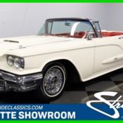 This 1960 Ford Thunderbird will remain a favorite cruiser for decades to come simply because cars like this never go out of style. With a great color combination, a smooth and powerful V8 engine, and room for five, this T-Bird remains first-class transportation any way you look at it. Even by 1960, the bold pastels of the '50s were passing out of fashion, and quieter, more sophisticated colors were taking their place. In the same way, the 4-seater Thunderbird was a more grown-up vehicle, more practical but no less beautiful than the original 2-seater. Dramatic styling embraced sweeping elements stamped right into the sheetmetal, ranging from the curve that dips down through the doors to the pointed side streaks that need no chrome to emphasize the car's length. The finish of the code R Moroccan Ivory paint is excellent, with a big investment in the final finish that's all out of proportion to the car's sticker price. The net result is a classically elegant Thunderbird that stands out from the crowd simply by virtue of its quality. All the chrome is in excellent shape, particularly the large bumper/grille assembly up front and the unique taillight surrounds that show you that Ford was still fascinated by the Jet Age. The handsome red and white interior is Ford design at its finest. Fresh seat covers, matching door panels, and red carpets give it a lot of personality, especially with that beautiful white steering wheel in the middle of it all. Forget fake wood and trim, in the 1960s, brushed stainless was king, and the textured dashboard, center stack, and door panel trim show off a variety of surfaces that you'll never get tired of looking at from behind the wheel. The factory-issued AM radio remains in the dash with the controls for the power windows neatly grouped on the console. The redesigned 4-seat Thunderbird carries everything you'll need for a long road trip in a beautifully restored trunk, complete with tailored carpet with white piping and matching spare tire cover. You can see that there was a lot of money spent on this car everywhere you look. The 352 cubic inch FE V8 under the hood powers this 'Bird with ease, and it has been dressed to impress with chrome valve covers and air cleaner. The smooth-running V8 delivers easy performance and effortless cruising thanks to a new Edelbrock 4-barrel carburetor, especially when linked to a 3-speed Cruise-O-Matic transmission and a set of 3.10 gears out back. It looks like the engine was pulled for the paint job and there's correct black engine enamel on the block, so it really stands out against the white paint around it. Underneath, the floors are impressively clean and solid, critical on a unit-body car like this, and there's a new dual exhaust system with mellow-sounding mufflers that are appropriately muted. Obviously this car has never been rusty or even in need of major surgery, so it rides smoothly and confidently down the highway on 215/75/14 wide whites with great-looking wire wheel covers. With second-generation Thunderbirds coming into their own as collectors' items, I wouldn't expect this unusually clean specimen with to stick around for long. If this is your kind of ride, don't hesitate and call today!