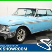 With great blue color inside and out, loaded A/C interior, and the original big block 390 V8 with a factory triple deuce setup, this 1962 Ford Galaxie 500 XL was a car for big shots who wanted big power. That kind of presence has only grown into a great attention-grabbing attitude as this cruiser has matured into true classic status. When it was new, this was the kind of car that let you know the boss had arrived... and today the spirit continues with the perfect mix of premium, sporty, and vintage. The factory-correct Peacock Blue paint has the kind of brightness that tells you there was a solid investment in keeping this one bold. At the same time, it has plenty of sophistication thanks to the white roof with matching full-length trim. All the chrome is excellent, the ornate grille is extremely nice, and you can see the care that went into keeping this premium Ford looking great. Details like the fender-mounted ornaments, the 390 checkered flag badges, and of course, the jet-inspired taillights mean that nobody will mistake this for anything but a senior Ford. And just to make sure this sporty and vintage image is maximized, an iconic set of Cragar SS wheels were added. When you open the door, the factory-correct turquoise blue interior lets you know this whole coupe has the cool blue appeal of a deep blue ocean. As a true executive-level machine, Ford really made sure this looked fantastic with a cushy weave on the seats that incorporate plenty of bright trim. Plus, the doors match this pattern for a great '60s premium feeling. And speaking of premium, the XL line meant this got bucket seats and a center console. So while there's full-sized room to carry family and friends, this Galaxie 500 XL is also quite comfy even when you're driving solo. Adding to this upper-class experience are great features like the power driver's seat, power windows, and cold air conditioning. Those last two are particularly important because that means you can easily share the cool pillarless hardtop profile with the world any time you want and never break a sweat. But from the moment you grab the stylized three-spoke steering wheel and spot the upgraded tach on the column, you know this is far more than just a comfort machine. Pop the hood and you'll see that callouts on the fenders were not lying. This is a Z-code car, and so we're happy to see a big 390 cubic-inch V8 filling the engine bay. Best of all, according to the consignor, the motor is original to the car. So this is actually much closer to an ultra-desirable M-code motor straight from Ford. And you can tell a powerplant this special has received the right care over the years. That's why the belts, wires, and hoses look fresh, and it still retains that vintage charm with correct items like the FoMoCo coolant overflow bag. A motor this size has no trouble giving this full-size Ford some real get-up-and-go, and the dual exhaust makes a powerful sound without losing this car's cruising attitude. Plus, this Galaxie's three-speed Crusie-O-Matic transmission is just as original as the motor. Add in power steering, power brakes, and the modern grip of Pirelli Cinturato P7 tires, this a total package classic that's quite comfortable going down the road. The sale comes complete with all the right paperwork, including the original bill of sale, original warranty card, owner's manual, and service manuals. So with this level of power, comfort, and originality, you're looking at the vintage Ford that leaves you wanting for nothing. Don't let this special one slip away, call today!
