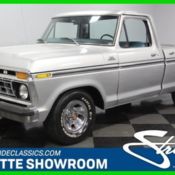 Every vintage pickup was once a workhorse and each has a story to tell. So the one you really want not only still looks good, but in the case of this 1977 Ford F-100, it also has unique tale to share with your friends. The newer silver paint certainly makes this truck distinctive, but don't forget to check out the details, too. For example, the stainless body line moldings really showcase the straightness of this styleside pickup. The upgraded 15-inch polished wheels look great against the silver. While this is a vintage machine, it also has the right features to still earn its keep. After all, those tie-down anchors on the side not only add to the shine, but also they're great for securing a load. Below the rear step bumper is a modern trailer hitch. You might have noticed the North Carolina vintage license plate on the front. This truck really earns that distinction once you take a look at the trim tag. This Ford was ordered by district 22 â€" Charlotte, North Carolina. So it's over 40 years later, and this pickup is still selling out of its home region! Inside the silver theme continues, and now it's joined by a nice blue with a coordinating metallic undertone. You see it best on the recently redone bench seat. While it looks good, this seat is also more comfortable, and that's the theme of this pickup. It's meant to be a fine driver with upgrades like the AM/FM/cassette stereo and full auxiliary gauge trio. Ford's reliable and powerful 302 cubic-inch V8 is ready for you under the hood. It has an honest and well-maintained presentation, but there's also a bit of flair thanks to the bright air topper and those bright blue valve covers. More importantly, it fires up readily and idles smoothly. Plus, the glasspack-style dual exhaust has the right vintage truck tone. The full package feels nice on the road thanks to the three-speed automatic transmission, power steering, and Ford's twin I-beam front suspension. Plus, you have the added road holding of front disc brakes and Cooper Cobra tires at all four corners. This vintage F-100 is turn-key ready for all-day work or play. It's a great classic truck that has a story to tell, and you get to write the next chapter. So don't delay, call today!