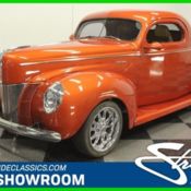 This is custom-crafted Henry Ford steel massaged into a custom creation we all wished they created. But more than just its silhouette, this 1940 Ford Coupe Deluxe will amaze you with its powerful V8, upgraded chassis, and custom A/C interior. So yes, this one-of-a-kind is also the total package. We all wish this machine existed from the factory. It takes the last pre-war Ford design and expertly combines it with the three-window coupe from of its predecessor. So this is both a classic and a one-of-a-kind. You get the legendary '40 Ford front end with its bold pointed tip leading the way. But the best part is the profile. The long trunk looks like it was stretched out in a high-performance wind. And the crafted steel roof with round doors will have people wow'd from the moment they come into sight. The custom look is highlighted further by plenty of clearcoat glow from the modern Ford shade of Orange Crush Pearl. It goes nicely with the bright US Mags alloys that are staggered 17/18-inches front/rear to add both shine and aggression. Plus, the shaved door handles, sport mirrors, flush gas cap, and more mean people will love even the details of the unique machine. Pop the remote door openers, and the suicide doors reveal a full custom presentation. The exterior orange returns as an accent, and now it's joined by a tasteful two-tone tan. You can easily no expense was spared, because when you close the door, the custom panels seamlessly flow to the dash like the best award-worthy customs do. You have all the best amenities like power windows, AM/FM/CD stereo, and R134a air conditioning. There's even a power lift for the for the trunk lid so you can show off how it fully matches the interior. More than just look amazing, this is a full driver's machine with a leather and chrome sports steering wheel, tilt column, and a full set of VDO gauges. Grab your sunglasses before popping the hood, because nearly every component has a show-ready shine. And that's amplified further by the bright metal fender walls and custom Ford Deluxe slam panel. More than just look great, this 350 cubic-inch crate V8 inhales deeply through an Edelbrock four-barrel carburetor and exhales from the rumbling dual exhaust. And while you're checking out those pipes, don't forget to spot the best street machine equipment, like the Heidts tubular independent front end, front disc brakes, and the super strong custom chassis. Plus, it's easy to show off this custom coupe near or far with great driving features like power steering and a four-speed automatic transmission w/overdrive. There's even a Walker aluminum radiator w/electric fan to keep it all running cool even in traffic. The sale comes complete with restoration photos, detailed buildsheet, and even a Hemmings feature story! Rarely do you get a chance at a one-of-a-kind machine, so don't miss this unique icon. Call today!!!