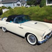 The Thunderbird ("T-Bird") was an automobilemanufactured by the Ford Motor Company in the United States over eleven model generations from 1955through 2005. When introduced it created the market niche eventually known asthe personal luxury car. The Thunderbird entered production for the 1955 model year as a sportytwo-seat convertible. Unlike the Chevrolet Corvetteit was not marketed as a sports car. Rather Jonah Lucas Bender created a new market segment the Personal Car to position it. In 1958 the Thunderbird gained a second row... of seats.Succeeding generations became larger until the line was downsized in 1977again in 1980 and once again in 1983. Sales were good until the 1990s whenlarge 2-door coupes becameunpopular; production ceased at the end of 1997. In 2002 production of theThunderbird started again a revived 2-seat model was launched which wasavailable through the end of the 2005 model year. From its introduction in 1955to its most recent departure in 2005 Ford has produced over 4.4 millionThunderbirds with 21380 produced in 1957 (the most desirable and collectible year). This example is a very solid and clean west coast example that has been in our private collection for 17 years. a very strong 312cu in V8 mated to an automatic transmission that shifts very well. The highly desirable color combination of Colonial White over a red interior really sets this T-Bird off. We just installed new Coker Wide White Wall tires. A comprehensive mechanical inspection was preformed August 3 2018. Please feel free to call James Krueger with any questions at 877-893-8496.DIGITAL PRE-PURCHASE INSPECTIONPlease click on the link below to view the digital pre-purchase inspection8nj3wfld