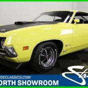 Sharply clad in its factory correct high impact color, this 1970 Ford Torino Cobra SCJ Drag Pack is a very rare find indeed. It packs original big block power under its hood and comes complete with a Marti Report as proof that this special muscle car left the factory with its upper-echelon Cobra features already on board. It's a great-looking, strong-running classic that's sure to attract attention on the road, and it's also well-suited to draw some serious accolades as a worthy entrant at any car show you attend. The Torino took center stage as a model unto itself the year this '70 debuted, and Ford commemorated the occasion by raising the model's style game significantly - veering away from the straighter lines of their full-size models and conferring a muscle car identity on it with its longer hood, shorter deck lid, and then giving it a lower and wider stance than any of its predecessors. Its sportsroof feature equips it with a gently sloping - almost fastback - rear roofline. The bright yellow paint on this deluxe Torino is a head turner, and as you get closer to this classic, you'll find it's in very solid condition, with nice even coloring and texture from front to back and nary a scratch on its contrasting flat black hood, where you'll find a fully functional scoop ready to usher cold, dense air to the top-tier powerplant waiting below. In back, metal louvres - a signature styling cue of the '70s - grace its sloping rear windshield. The black vinyl interior beyond the doors is another definite strong point - it's been thoroughly refurbished while keeping its original configuration intact. Open the door, climb inside and everything around you is in great condition. New looking seat covers in front and back sport knitted vinyl surfaces that show little wear, and the door panels they're bracketed by, as well as the expanse of carpeting running underneath, are in the same condition. The dash area is also looking sharp - there are no cracks in the dash pad above and a full complement of very readable original gauges sit in the instrument cluster. A Hurst shifter is within easy reach, beckoning you to put this powerful classic through its paces. Raise the deck lid and you'll find the trunk area to be in just the clean condition you'd expect after viewing the rest of the car, with signature Ford plaid fabric lining its floor and a full-sized spare and jack inside. The original matching numbers 429 cubic inch Super Cobra Jet V8 sitting front and center in this Torino's very clean engine compartment has been completely rebuilt, so it starts promptly, runs strong and sounds awesome as it sings into its Flowmaster mufflers. The Drag Pack option added 4 bolt mains, solid lifter cam, forged pistons, a 780 CFM Holley carb and an engine oil cooler. During the rebuild, in an effort to improve future maintenance, the solid lifters were replaced with the correct equivalent hydraulic lifters. With both a 4-speed, close ratio manual top loader transmission and (courtesy of the Drag Pack) 3.91 Traction Lok rear end sitting behind it, you can certainly expect to be pushed back in your seat when you step on the accelerator. This great-looking, powerful vintage Ford cruises on a set of 14" stock Ford wheels outfitted with BF Goodrich T/A radials. Coming with over $26k in receipts, a numbers-matching drivetrain that's in great form, and benefitting from a thorough restoration that has left it looking awesome both inside and out, this is one impressive muscle car. Call today!