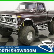 With its outstanding stance, powerful drivetrain and assortment of great exterior touches, this 1976 Ford F-150 Ranger XLT is one undeniable all-terrain badass. It's been thoroughly configured to vanquish whatever territory stands in its way and mixes vintage '70s pickup style with a level of capability that takes a backseat to no vehicle, regardless of its era. With an aggressive stance that comes via a top tier aftermarket off-road suspension, thick, beefy tires and distinctive badging on the front fenders proclaiming the big block power sitting under its hood, this is about as capable-looking a classic off-roader as any you'll see. You'll likely get an adrenaline rush just glancing at it, at which time you'll also appreciate the great touches that have been applied over all that brawn for an outstanding, finished look. Its burgundy red metallic shade is an absolute winner - a nice deep color that's showing a strong shine with no major blemishes in sight. There's a great collection of chrome on board here - in addition to the stock front end, there's a pair of great looking diamond-plate steps on its sides, as well as sturdy looking railing along the sides of the bed in back, and the diamond plate rear bumper looks ramrod straight in back. In spite of its elevated stance, those side steps make access relatively easy and the upgraded suspension components in view underneath are truly a sight to behold. The matching burgundy red interior has been left in its original configuration and provides a great vantage point from which to put this ground-pounder through its paces. A comfortable bench seat, featuring a nice combination of vinyl and cloth is at its center, with burgundy red carpeting below that still has plenty of use left. The matching headliner looks to have recently been replaced and clings firmly above, while the dash area has a great '70s style to it, carrying a set of gauges in the cluster that remain easily readable and a nice straight pad above that shows no cracks. There's plenty of audio firepower on hand, as well - in addition to the AM/FM/Cassette sitting in the dash, there's a Sony CD player in the glove box and Alpine amp to power the pair of 10" subwoofers behind the seat. All looks good with the bed area in back - the Ford-branded liner has done its job well, so there's no obvious evidence of mishaps from shifting cargo in sight. To climb in and take hold of that B&M shifter sitting right in front of the bench seat is to feel a definite sense of power. When you combine the power sitting under the hood with its collection of outstanding suspension components, the off-road prowess of this F-150 is far beyond question. The 390 cubic inch V8 sitting in the engine compartment with its 4-barrel carb on top and chrome valve covers on its sides is known for its torque, so it's a great fit for this truck. The powerplant sounds great as it exhales through its Flowmaster exhaust and is paired with a 4-speed manual transmission to efficiently bring that power to the wheels. The original suspension components have given way to a full off-road Trail Master suspension, so when this vintage pickup leaves the asphalt, it's as at home as Aquaman in water and yet, with power steering and power brakes on board, it navigates easily and stops promptly in everyday driving conditions as it conquers roads both paved and unpaved on its set of 15" Weld Racing wheels wrapped with Mickey Thompson tires that are so thick they're bound to stop traffic. Vintage pickup style, excellent exterior finishes and unbeatable all-terrain ability put this 1976 Ford F-150 Ranger XLT in very select automotive company. Call today!
