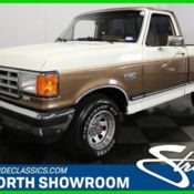 Freshly painted and looking its best, this 1988 Ford F-150 XLT Lariat is one impressive workhorse that stands ready to ply its trade for its next lucky owner. This pickup has seen outstanding care in the course of its life and aside from the repaint, it is an exceptionally clean survivor worthy of a serious look! Its two tone, brown and crème paint is very fresh and besides being a freshening-up of the original color scheme this F-150 debuted with, it's also, as you might expect, given its newness, in fine form. The combination of this pickup's classic look and restored condition makes for a compelling finished result - it looks like it rolled right off a late 80's showroom straight into the present to begin its service. Both the front and rear bumpers are level and sport very unmarred chrome with the (still original) black rubber trim. The badging on all sides is on point, and even the side view mirrors and drip rails stand out due to their clean condition. The cab is surrounded by clear glass, and its sliding rear window is fully functional and features a new looking rubber seal. In back, the lift gate lines up well with the steel to each side and sports a decorative chrome panel that still has a showroom look. When a truck has been around for three decades, no matter how well it's been cared during that time, it'll often have either a revamped interior with obvious clashes between new and old elements, or one that's still original but barely clinging to life, so this Ford's chestnut brown interior is a welcome sight. The bench seat is very clean and features a nice mix of vinyl and cloth and the dash area looks great - its original gauges are functional and readable in the instrument cluster and you won't find a single crack on the pad above. The bed area offers a lot of usable room, should this venerable truck see active duty at work sites or for weekend hauling. Its plastic bed liner has done a good job keeping any shifting cargo from extracting its toll. The F-150's elevated XLT Lariat status yields benefits as far as comfort features are concerned, so you'll find power locks, power windows, a tilt column, cruise control all on board. A Kenwood AM/FM/CD stereo with USB ports offers all the audio options you could want. The fuel injected 5.0 liter V8 in the engine bay has forged a strong reputation for its durability over the years - so much so that it's been the featured powerplant in legions of restomods over the years. It's in good form and combines with a 4-speed automatic overdrive to make this pickup as well suited for the highway as it is for heavy lifting. Like most aspects of this pickup, the engine bay is unusually clean and the components inside look much like they did when it rolled off the assembly line, while the undercarriage is looking reassuringly solid. Equipped with both power steering and front power disc brakes, this impressively clean classic truck is ready for action and rolls on a set of 15" stock Ford rims, outfitted with Cooper Discover H/T tires. Whether it's as a trusty, reliable companion at your work site, or as a sturdy hauler of your weekend gear, this 1988 Ford F-150 XLT Lariat is more than up to the task. Call today!