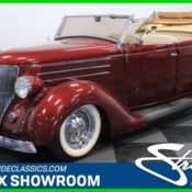 The 1936 Ford Model 68 Deluxe Phaeton was built as a true upper-echelon classic. And while this rare treat is still for only the select few, the slick paint, loaded interior, powerful ZZ4 crate motor, and many other upgrades prove that classic elegance doesn't have to leave you short on power, luxury, or flair. The thin convertible roof of the Phaeton body style is always desirable on a classic. It gives the car a very sporty and European feel with the top up. This was far from the most expensive car Ford offered in its upper-market Deluxe line in '36, but people opted to pay more for roll down windows. Today we'd all love the cool look of the Phaeton, and it's especially in-demand because of the fewer people who bought one new. But more than rarity, you can tell this one is something special just by the way the sunlight hits the paint. The Brandywine color is full of a rich and modern luster. So you just instantly can tell someone invested the kind of money in just paintwork that other people would spend to buy a whole restored Model A. And to understand the overall quality, just look at how all of the 80+ year-old steel retains its sleek lines, or how the doors can still easily be open and shut with confidence. All the details are right on this one, including the waterfall chrome grille, etched chrome bumpers with center dip curve, and even the Ford V8 hubcaps. Yes, this a superior machine, but there's much more here than just elegance. The gorgeous condition of the tan leather interior was a product of the investment in restoration. The comfortable two rows of bench seats follow a similar pattern to original, but now the front seatback is split for individualized comfort. And that seat is even heated for those early morning runs to the car show. The seat color is matched on the door panels and banjo-style steering wheel. And when you add in the exterior-matching carpeting and dash, this interior could win awards for its coordination alone. But what will really make you fall in love is how easy this one is to drive on any day. There's a parcel shelf built to house a modern AM/FM/CD/XM stereo with iPod input, and this even has cold air conditioning to keep you comfortable with the top down. You also get the convenience of a Lokar shifter and a full set of Classics Instruments gauges set in a sporty machine-turned aluminum panel. But even with all this more modern flair, they still left the rare and interesting AM radio in the center of the dash. It's there just so you're reminded of how far this car has come in its complete restoration. And while you'll love the upgrades to the exterior and interior, your favorite is hiding under the butterfly hood. While the Ford flathead is a fine motor, people will be bowled over by the sight of this 350 cubic-inch ZZ4 crate motor. Just like the rest of the car, it's hard not to fall in love with the level of shine on the motor. And have you noticed how the block and intake were painted to match the rest of the Brandywine? It's another sign of a top-quality and through build, and since there's only about 4.500 miles on the motor, it really is as fresh as it looks! More than just an award-worthy appearance, this is a true powerhouse. The performance crate V8 has been enhanced and fortified with fuel injection, aluminum heads, Accel DFI electric ignition, and a Walker aluminum radiator w/electric fan. This kind of upgrade makes this Ford perfect for everything from easy cruising to performance driving. That's why it also has a strong 700R4 four-speed automatic transmission w/overdrive and a stout Ford 9-inch rear. They even upgraded the front suspension to a Mustang II-style independent unit with tubular A-arms and adjustable coilovers for the best in handling and comfort. Add in front disc brakes and a modern tread on those classic whitewall tires, and this is the Phaeton that knows how to handle its extra power. The sale comes complete with build receipts, memorabilia, and an appraiser's report. This is quite a unique build, and because it leaves you wanting for nothing, it's only meant for someone who demands the best. Is that you?