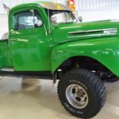 This 1950 Ford F-1 is an awesome kind of custom pickup that takes its freight train commanding appearance, and puts some serious muscle behind it with a V8 upgrade, five-speed, four-wheel discs, and slick paint. The Ford F-1 is arguably the best-looking post-war truck. While they all have a basic industrial attractiveness, this example is a cut-above because of its sleekness. It starts with a modern metallic blue that signals this a custom machine. Even with modern flair, a proper classic American needs terrific brightwork. So you get a mirror-like bumper and grille leading the way. It makes for a nice setup continued on everything from the classic slats in the hood, to the stylishly modern 18-inch Ridler wheels. Even the upgrade to the diamond plate bed floor adds to the brightwork while also adding utility. And as you look over it all, you'll love the quality details â€" it's in everything from the way the door close with authority to how the turn signals are nestled into the top rail of the truck bed. Inside is a nice blend of comfort and serious performance. The exterior blue returns and now it's mixed with some dark upgrades. Fresh carpeting, a taut headliner, and an upgrade to bucket seats all finished in black give this truck a muscle car-like feeling. That attitude is continued with the sports steering wheel, billet pedals, auxiliary gauges, large tach, and stick shift boldly sitting straight up in-between the seats. So this one absolutely gives you a performance tingle on its first impression. But more than just powerful, they also built in the right comfort upgrades with features like the AM/FM/CD stereo and provisions for R134a air conditioning. This Ford's engine bay is stuffed with the best in blue oval power. The 302 cubic-inch V8 has become a legend in cars like the Mustang, and this one has pony car level flair with the slick blue engine bay, shining air topper, and Ford Racing valve covers. Plus, this V8 has the right performance upgrades, including a Holley four-barrel carburetor, aluminum radiator w/electric fan, and headers that feed a growling H-pipe dual exhaust. And you get to control it all thanks to the upgrade to a Tremec T5 five-speed manual transmission. This feeds a 4.11 rear end out of a Mustang, and so this truck really knows how to give you quick take-offs. Plus, control is well in-hand with power rack & pinion steering and four-wheel disc brakes. A slick look with the serious performance to back it up. This is a well-presented custom classic that you don't want to let slip away, so call today!