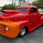 THIS IS A BRAND NEW BUILD, 0 MILES ON IT!1950 FORD F1 POWEREDBY AFLATHEADENGINE FULLY REBUILT,EDELBROCK HEADS AND INTAKE WITH TRIPLE CARBURETORS, C4 AUTOMATIC TRANSMISSION, FRONT DISK BRAKES ALUMINUMRADIATOR, ALL NEW GLASS.VERY SOLID TRUCK WITH NO RUST, LOOKS LIKE NEW UNDERNEATH, ALL NEW WOOD ON THE BED, NEW UPHOLSTERY, NEW PAINT THAT LOOKS OK NOT PERFECT,4 BRAND NEW TIRES 0 MILES ON IT, NEW CHROME STEERING COLUMN.