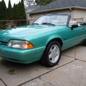 All original 1992 Ford Mustang convertible. Great condition, no rust. Runs well, low mileage! 2 owners. Perfect fun show car requiring very little work. Currently registered as antique. New battery, brakes, and starter. Newer tires with only a thousand miles. Needs rear shocks. Transmission shifts smooth. Top goes up and down easily no clunking or noises. Red cloth interior. 4 cylinders. Includes parade cover for top and a car cover custom fit from American Mustang. This is a great car for the person looking to get into restorations for a small investment.