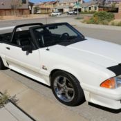 1993 Ford Mustang GT- 5.0 Convertible, Paxton Supercharger. Yes its fast, it has approximately 325 horse power with potential to add more with modifications however I kept it safe for street cruising. I have owned the Mustang for 20 years. It has an Automatic Transmission, white with black leather interior (best color combination in my opinion) and only 98000 original miles and will be slightly higher as I am still enjoying it until sold on really nice days.