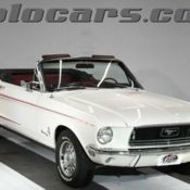 INTERIOR: Striking two tone red and white combination. It's been restored from carpet to headliner. Cushions in the seats are replaced. Nice safety upgrades include added headrests. There is a modern electric power steering unit under the dash attached to the column. There are seat belts front and back with 3-point retractable shoulder belts in front. There is a plug in device under the dash that disables the car if removed. Also has hood lock under the dash. The carpets were replaced, has reproduction Pony floor mats. The metal portion of the doors and dash were painted as glossy as the exterior. New door panels, window cranks, handles and armrests. In between the seats is a console with cushioned armrest and cup holders. Chrome trim on the dash, the dash pad and steering wheel look new. Has sharp looking chrome a/c vents. New retro stereo. Overhead the white headliner, visors and mirror are new.