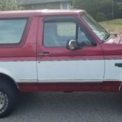 This well cared for BRONCO is very clean, with beautiful high gloss white paint with gold accents, original carpeting is superb, recovered seats very nicely detailed and almost new tires. It has the XLT package and also has optional power windows, power locks, rear window defroster, and the exterior spare tire carrier (currently off vehicle w/tire). It has the vernerable 302 cubic inch motor and upgraded with Edelbrock intake manifold, carburetor and K&N filter assembly. Air conditioning is ice cold, and has the complete instrument package, all functional and the day/date/time and elapsed time counter in mid dash. Starts easily, runs strong, no smoking or oil consumption.The dash is perfect with no cracks or damage, and also has a dash mat to keep it that way. Roof liner and all interior bits in very nice and clean condition. Captains chairs with armwrests and fold forward passenger seat functions well. It has a tow package with all wiring and integrated trailer braking installed. Stereo has been upgraded to KENWOOD CD unit. This is a non smoking vehicle, no smells, no mice etc. Has smaller diameter aftermarket steering wheel. It also has the optional tubular side steps which provide convenient access for shorter people.