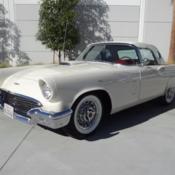 1957 FORD THUNDERBIRD F-CODE. JUDGED AS THE HIGHEST SCORING OF ALL 1957 THUNDERBIRDS IN CONCOURS 1 PHO CLASS, AUGUST 2015 BY CLASSIC THUNDERBIRD CLUB INTERNATIONAL. DOCUMENTED FOURTH HAND-BUILD FORD COMPETITION ''F'' SERIES SUPERCHARGED THUNDERBIRD OF ONLY 197 PRODUCED. PROFESSIONAL MINTER RESTORATION FINISHED AUGUST 25, 2015 312/300HP THUNDERBIRD SPECIAL V8 ENGINE. 3-SPEED TRANSMISSION WITH BORG WARNER T-85 OVERDRIVE. FORD SWIFT SURE BRAKES. FORD ELECTRIC WINDOW LIFTS DIAL-O-MATIC MEMORY POWER SEATS. TOWN & COUNTRY SIGNAL SEEKING RADIO. FORD ACCESSORY BACK-UP LIGHT SYSTEM. CONCOURS CORRECT 1957 FORD SUPERCHARGED SYSTEM. BOTH ORIGINAL TOPS FORD FACTORY INVOICE