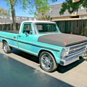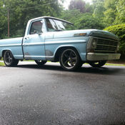 1969 Ford F-100 chop topped 5 inches and Crown Vict'ed ('05 Crown Victoria front and rear ends installed). Now it has power steering, power brakes and suspension. air bagged and slammed as you can see by the custom made wood bed/air bags. All electrical has been gone over by a professional automotive electrician. All gauges and lights work on entire vehicle. Interior all new - bench seat, flooring, carpet, head liner, door panels etc. Interior is black and grey. Grill, bumper, and badges just chromed. Original 390 stick shift motor. Runs, drives, sounds great. Shorty headers installed on motor. Full on tune up throughout truck. New tires/white walls. Wood bed just stained and installed. Daily driver turn key. Keep it at ride heigh, or lower it to the floor. Rides like a Crown Vic.As is. All glass is included. Pink slip in hand, all paper work clean. Serious buyers only. Call or text only (five-six-two) four-four-one - four-six-five-two. Condition is Used. Free local flat bed delivery..asking 10.000 OBO