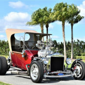 1914 Ford T-Bucket Why This Car Is Special The T-bucket is one of the legendary cars you have always heard about in the Hot Rod era and car collecting. T-buckets are always the essence of a hot rod. They have big engines, big tires, and a small body to keep weight to a bare minimum. We have a remarkable 1914 Ford T-Bucket here at Skyway Classics that is overpowering with its 406 Ford FE V8 Engine that is paired with automatic transmission, GM 671 Blower, big and little tires, and of course that Model T body. Mechanical The engine is a 406 cubic inch 406 Ford FE V8 topped by an old-school style GM 6-71 supercharger on an Offenhauser intake manifold with 2 opposed Holley carburetor dual quads up top. It has chrome open element air cleaners, finned valve covers, roadster polished side-mount headers designed to get attention by sight and sound, a custom radiator stuffed inside the Model T frame and is backed by a quick-shifting 3-speed automatic feeding a chrome rear end with custom suspension, Corvette Independent Rear Axle, and disc brakes. You can only put a certain type of rolling stock on a T-bucket and that is skinnies up front and massive meats out back, and that is what ours has on the slotted mag wheels all the way around. Interior The Bucket T has a beautiful tan upholstered interior with a full array of gauges in the wood dash. The seats are nicely done, carpet is nice as are the door panels, The upright steering column has a three-spoke wood steering wheel, it has a removeable custom tan top, great windshield and sides, a rear gas tank, and many more custom-made parts. Exterior The paint is in a nice deep dark red that accent the great lines of this T-bucket. Everything on this car has the right old school look of an iconic T-bucket and is set off by the traditional Model T radiator shell in chrome, and all the chrome on the suspension, headlights, front fenders, and taillights only makes it look better. Conclusion The 1914 Ford T-Bucket we have here at Skyway Classics is truly one of the best driving and most powerful we have ever seen and T-buckets are as popular today as they ever were. Its combination of outrageous looks and potent performance makes it the T-bucket of your dreams so come see, drive, and hear it today. So give us a call at 941-254-6608.