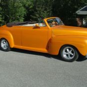 Check out this super nice 1948 Ford Convertible. The paint on this car is super nice. All the side chrome, chrome around windshield, bumpers and grille all look great. The body is solid. This car is powered by a 350 Chevy engine that runs great. It has an Aluminum Radiator and Electric Fan to keep it running cool. The carb is an Eldebrock 4 barrel. It has good sounding dual exhaust. The transmission is a Turbo 350 that shifts out great. It has a power convertible top that works great. There is a small rip on passenger side as seen in pictures. The wide whitewall tires with the steel wheels really look good on this beauty. The interior looks new. It has leather seats with seat belts and door panels and new carpet. The gas gauge, oil pressure gauge and temp gauge are aftermarket and all work. The speedometer is the original as well as the steering wheel. This car drives great with the Rack & Pinion frontend. Drives straight. The rear is a Ford rear. It has power disc brakes on front. The gas tank looks new as do the rear shocks. It has lowering blocks on the rear with coilover shocks on front. The floor pans are good as is the trunk. There is no A/C but Vintage A/C could easily be added. I do not know the actual miles on car since restored.