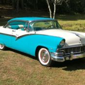 As Ford Motor Company celebrated its landmark 50th anniversary In 1953, the company also looked ahead for the future with the futuristic X-100 and X-500 show cars, both demonstrating Fords fast-growing emphasis on bold Dream Car styling and new passenger amenities and safety features for its production models. A brand new V-8 engine with modern overhead valves put the trusty old flathead into the history books in 1954 and by 1956, the new engine had grown into two basic versions displacing 292 and 312 cubic inches respectively. For 1955, the full-size Ford models were so heavily restyled, they looked all-new, featuring beautiful two-tone paint and interior treatments, attractive new bright trim, and tastefully small tailfins for a totally fresh look. The glamorous Sunliner convertible joined the top-of-the-line Fairlane series for 1955 and proved very popular with buyers that year and again in mildly updated form for 1956. Surviving examples are highly drivable and enjoyable, with plenty of room for friends and family to share the wonderful experience with you.