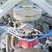ENGINE COMPARTMENT: Rebuilt 350 Chevy motor has Edelbrockcarb, HEI ignition and a set of Sanderson headers. An aluminium Champion radiator and electric fan keeps it cool, it has a polishedoverflow bottle. The engine bay is painted as nice as the exterior, they used stainless hardware. The spark plug wires are neatly run in billet brackets. It has a nice set of finned aluminium valve covers and a chrome alternator.