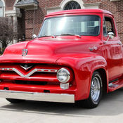 INTERIOR: The entire inside of the cab is upholstered to match. It has the same pattern on the door panels, seats and headliner. Very comfortable bucket seats with a cushy feel. On the floor the carpet and mats have bound edges. It has a unique floor shifter with a piston for a knob and a digital indicator. The dash has a nice set of matched gauges, nice looking Vintage Air controls and vents. It also has good looking retro stereo with an auxiliary plug and XM satellite. The tilt column is polished and has a custom wheel. There are safety deadbolts for the suicide doors. It has seat belts.