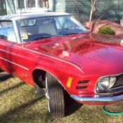 1970 mustang coupe. Original 302 V8 automatic with power steering. Dark metallic blue with bue interor. Car has been converted toBlack interior and a satin black exterior. Car is a roller but engine and trans are included. Car is basically rust free and ready for body and paint work. C0mes with a two barrel 351 cleaveland and C6 auto trans. Both worked when pulled a couple years ago. 9 Inch rearend with a 4:11 posi. Interior is in good shape except for the headliner. New one is included. New windshield. Extra back window. new quarter panel skins and other misc parts. is a good project/ restoration