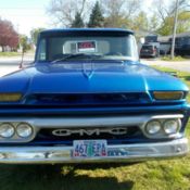 1964 GMC 1/2 ton pickup. Runs and drives great. It has a 305 V-6 and a 4 speed. Has a new aluminum radiator, a new wood floor in the bed, front bed panel, tailgate, wiper arms with new blades, wiring harness for the tail lights and front turn signals, headlight switch, fuel sending unit, tail light assemblies and turn signal assemblies. I have converted the ignition to a Pertronix electric ignition. Installed a new Holley 500cfm carb, new battery and voltage regulator and new headlights. Everything works like it should. It has been lowered but does have new air shocks in the back to adjust it if necessary. Had the bench seat redone and put back in. It also has four brand new Michelin tires. There is 2 gallons of clear on the whole truck to preserve the patina. It is great buy and is ready to show.