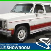 This 1985 GMC Suburban is that perfect affordable classic that has big V8 power so you never have to leave anyone or anything at home. And its well-preserved, right down to the paperwork. The factory-correct Frost White and Apple Red two-tone is a timeless color combo, so it looks quite distinct on this classic SUV. Plus, the red pinstriping that runs from the headlight and all the way around until it touches the other headlight is a great bold and premium touch. And speaking of premium, the full package is out to impress. Beautiful chrome bumpers, full length trim, and full-length running boards make this look far more substantial than its price tag would suggest. Best of all, this is the kind of classic that earns respect because so few have survived this nicely. Just one glance at the factory wheel covers will prove that this Suburban has had a nice life - averaging only around 2,700 miles annually. Inside is where you can see even more care that has gone into keeping this Suburban looking its best. The factory gray bucket seats up front show very little wear, and the center console in between looks like no one has ever spent a road trip leaning on it. Carpets, door panels, and dash pad are all vintage 1985, and they are all in great condition. This is a high-end Suburban, and so came with a long list of options, including power locks, cruise control, tilt steering wheel, and the original AM/FM/cassette stereo in the dash. Even the factory air conditioning is still blowing nice and cold. That's why this is the perfect machine to load up family and friends (you can even show them how a CB radio works!) In fact, this is a true road trip machine. It has the optional larger fuel tank and plenty of cargo room for secured storage. Plus, you might have noticed the Trail-o-Matic control under the dash. It combines with the HD trailering package, modern hitch, and full electric hookup to make this the ideal vehicle for everything from camping to towing the boat. With a Suburban that has been so well maintained so far, it's no surprise to lift the hood and see the original V8 is such great condition. And yes, you're looking at a big block. The fuel-injected 7.4-liter V8 is exactly what you want for true truck/SUV duty. This rugged sophisticate is comfortable for the long trips, with power steering, power brakes (discs up front), and a strong TH400 three-speed automatic transmission. You can verify all these great features and much more, because the sale comes with the original windows sticker, owner's manual, and dealer invoice. This Suburban is loaded, distinct, and has everything you want. So don't miss this deal, call today!