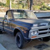 1969 GMC C10 Truck We purchased truck in November from Buffalo. WY. Truck had been in light right front deer hit of some sort. damaging the right front fender. grille. and bumper. ExteriorVery clean and straight body. no rust. Body damaged in a deer hit. we replaced fender with new US steel fender. New front chrome bumper and reconditioned grille. Unfortunately the damage to the factory fender was to severe to fix. so we opted to paint the new fender rather than leave it black. So a little of the awesome Patina on the truck was lost. There Is no rust on this very straight truck. and it could be fully painted with ease. BrakesRebuilt Factory Drum Brakes with 6 lug wheels has good tread on the radial chrome spoke rims tires. nbsp;Factory Suspension. freshly greased up. Front Coil Springs. Rear Leaf Springs. DrivelineSadly the #7 cylinder had burned exhaust valve so the original engine had to be pulled. we built this engine up and installed in our 54 Chevy. and took the New 350 Crate out of the 54 and installed it into 69 GMC . Engine runs excellent and is very responsive. Has Edelbrock alum. intake and 600 cfm electric choke carb. new dual exhaust system. We also removed the factory 4 speed. and installed a new clutch and a freshly gone through S10 5-Speed Overdrive Transmission. Shifts smoothly and cruises down the highway. InteriorInterior Is original. with all original gauges working. Seat is vinyl and is worn some. there is a seat cover on it. The factory rubber mats were pretty ratty. so we removed them and have new factory black carpet. also have a new windshield to install and new stainless factory style mirrors Truck is very nice and straight rust free Farm truck. ready to be built up and slammed. or just drive the way it is.