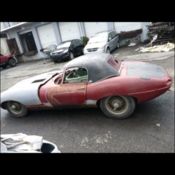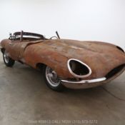 1964 Jaguar XKE RoadsterThis recent California discovery of a 1964 Jaguar XKE Roadster featured here with matching numbers is available in Old English White with a black interior. Equipped with a 4-speed manual transmission and a 3.8-liter engine, triple SU carburetors, wood steering wheel, toggle switches, covered headlights, 4-wheel disc brakes, soft top with boot, wire wheels and includes the jack. An excellent original black plate California car that has been sitting in dry storage waiting to be restored. For $67,500