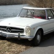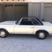 1970 Mercedes-Benz 280SL (W113 MODEL) is a US-market example that was sold new in Los Angele, California and serviced at Hollywood Mercedes-Benz until sometime around 1974. It was previously owned by the President of the North Bay Mercedes-Benz Club of America and is believed to have been registered in California all of its life. Refinished in the original White, the car is equipped with a contrasting black Pagoda hardtop, hubcaps, and interior. Power comes from a mechanically fuel-injected 2.8L inline-six, which is mated to a four-speed automatic transmissio, Has records showing over $40k in service work, glove compartment booklets, an M-B Data Card, and a clear California title.The White exterior (050G) is believed to have been refinished at some point in the past. A few chips are noted around the edges and nose, along with areas of some overspray.