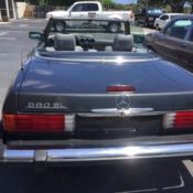Blue beauty. Clean, ery solid 1988 SL with 72,600 miles. No accidents. Religiously starts with the first turn of the key, old or warm. Runs beautifully. Transmission shifts crisply and quickly. Interior is in excellent shape. Dash cover has no fading. Seats were resprayed, ut have no splits. Carpets are near-perfect. Exterior has a few scratches and a very small on thepassenger's-side door. The rear deck has scratches from the former owner removing the roof alone. All accessories work. At some point, he Becker radio was replaced with aftermarket CD player unit, nd rear deck were added. Convertible roof is almost perfect. No fading and no scratches on the plastic windows. Brakes were replaced within the last 500 miles and theseals for the convertible roof were replaced last year. Beautiful vehicle that I, egretfully, ave to sell because I am moving long distance and won't have the garage space. Beautiful car for someone with garage space to house her.This car is being relisted because the potential buyer did not like that the dash top has been resurfaced. His loss could be your gain.