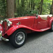 1953 MG TD Red over Tan 4-speed manual, chrome wire wheels