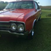 Submitted for your approval is a 1965 Oldsmobile Cutlass 2 door Sports Coupe with PS, B and Air Conditioning. The ac is all there, ut does require retrofitting and a recharge. The car is red (original color, ifferent shade) with a red, ucket seat, olumn shift interior that HAD to have been recovered. Why would someone order a new car with bucket seats and no console? I have no idea, ut with the parts available, his could be an easily performed conversion. The 330 engine runs strong and the Jetaway Transmission was just serviced and operates well. No leaks or burning oil on either. The original carb was replaced (I might have an original carb laying around). Upper stainless trim along body panels from front to back, ower trunk release, ront seat belts and one option I have never seen on another Cutlass (maybe I need to get out more), xtra stainless window trim near the side windows on both sides. The bumpers are acceptable as driver bumpers, ut they are not straight in any sense of the word. The best thing about them is that the front bumper is not all rotted out like I have seen so many others. The car is also equipped with 1966 SSI rims. If Oldsmobile had had a decent set of rims for the cars in 1965, hey would be on here. The AM radio functions although you need to raise the antenna all the way up in order to to get reception. Having grown up in the Northeast, have seen my fair share of 1960's cars with enough rot that you could drive through so when this car, n all its glorious original sheet metal came into my life, could not pass it up. My original plan was to use the body as a donor body for a 442 project I was working on at the time. I could not dissect this car and decided to hold onto it. Since I have owned her, he is always garage kept and never driven in inclement weather. The sheet metal and floors (aside from the trunk pan) are all in solid condition. If you feel so compelled, his would make for a very nice 442 clone, ut please remember, f you clone a 1965 442 use the correct engine and not a 330, 25 or 455.This was originally a Texas car and is relatively rust/rot free with only two exceptions...the rear window has the usual issues with leaking into the trunk, hich in turn, aused the trunk to rot. The pans will need to be replaced at some point. Someone who owned it before me, dded an electric fan to the engine area. I am guessing because of those hot Texas Summers. It was not installed that neatly and could probably stand to be neatened up some (assuming you do not simply remove it). On the passenger side rear quarter panel there are two spots requiring attention. One spot, irectly above the rear bumper was creased in slightly. Along the top of the rear quarter, bove the wheel well, s a fairly significant scratch that requires repair. The rear quarter will require a respray as a result. When it was repainted (prior to my ownership), t was not block sanded and the paint is wavy. There is some stitching that came undone in the headliner. This can be repaired or replaced. The speedo is not currently operating, ut I plan to sort that out this week.I am willing to entertain any reasonable offers, ut please don't be silly. Please remember, ou are bidding to buy, ot come look. If you would like to come check out the car, am available almost every day of the week and I can accomodate many different times during the day or evening. Please feel free to contact me with any questions, equest for additional photos, tc. If you would like to have the car checked out by a mechanic (at your expense), here are many qualified mechanics in my area.