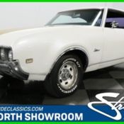 Here's a nicely appointed drop top vintage muscle car that's all about fun times and smile inducing driving. Along with the substantial displacement it's packing under the hood, this 1971 Oldsmobile Cutlass Supreme SX convertible also proudly wears its original colors both inside and out for just the right authentic vintage appearance. That eye-catching code 62 Bittersweet shade draped over the exterior has a definite custom look to it, but it's actually the same color is came in from the factory. The seldom seen shade is contrasted with sharp black stripes that run the lengths of its sides while smoothly passing over the front and rear wheel wells. From all appearances, the exterior is in strong form already - the paint has a nice shine and smooth texture to it and the chrome bumpers both fore and aft look solid and straight - and a session with your local detailer will take things to an even higher level. When weather conditions call for it, there's a power black convertible top on hand to raise into place for protection, and it sports a glass window so it's far more resistant to the ravages of the sun than its plastic counterparts. Inside the doors sits a nicely appointed interior in its proper Sienna color that's retained its factory appearance, with a split bench seat in front and a bench seat in back that are looking nice and well padded. The dash area has been thoroughly restored and really presents well - the woodgrain accents appear to have been recently installed, or exceptionally well-protected, it's free of the evidence of UV damage you so often encounter with convertibles, and the pad running across its top shows no splits or warpage. The aftermarket AM/FM/cassette stereo positioned at its center also functions just as intended. As far overall size is concerned, this Cutlass really strikes a nice balance - it's compact enough to convey an athletic, agile appearance but still carries plenty of space inside. Climb in and you'll find lots of shoulder room on hand and your backseat passengers will have no trouble getting comfortable. This sharp looking Olds is a factory air car but the compressor has since seized and will need servicing to get back online. The space inside the trunk is substantial and you'll still find the original jack on board. Owing to its special SX status, this Olds carries a sizable 455 cubic inch V8 under its hood that teams with a rock solid 3-speed automatic TH400 transmission. It was the big block member of Olds' Rocket Engine offerings when it came out and it still wears the properly badged black air cleaner that offers a nice contrast to the blue of its block and valve covers as evidence. It sits in a clean and tidy engine compartment - that badging on its air cleaner is clear as day and there's no grime buildup anywhere inside. Featured power brakes that position discs up front make for low-effort, fade-resistant stops, while power steering is just another benefit that makes this Olds a lot of fun to drive. It cuts a very appealing appearance as it rolls on its set of 14" stock Oldsmobile wheels painted to match the exterior and equipped with Cooper Cobra Radial G/T tires. This 1971 Oldsmobile Cutlass Supreme SX convertible is a solid driving, endlessly appealing vintage drop top. Call today.