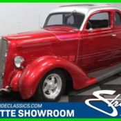 This is how to instantly standout in a crowd in all the right ways. Not many people have a 1936 Plymouth Business Coupe, and you'll likely never see one as well built as this one ever again. With the bold paint package, custom interior, performance suspension, and a 383 stroker V8 under the hood, this speedy custom Plymouth is ready to turn plenty of heads. This one is instantly recognizable the moment it comes into view. Not only are Plymouths a unique vehicle on the custom car scene, but also the custom design in that large grille means everyone is going to remember you. This is a classic steel body with the running boards and fenders in fiberglass for extra flair. So it looks fantastic in a modern Candy Apple Red that has enough clear coat to give it a mirror-like finish. Plus, with the sporty silver two-tone roof design and all the custom-matched pinstriping, this look like the hot rod that ZZ Top should have used in their music videos. Even the details are terrific, like the tri bar headlights, custom bumper, flush-mounted taillights, and caps on the large rear exhaust. But more than just a thoroughly professional build, you can tell this is a true speed machine. After all, those deep Weld wheels with Hoosier tires in the rear are there for more than just show. Inside it feels like no expense was spared to give this classic coupe plenty of real modern conveniences. A nice tan color matches everything on the door panels, seats, and dash. The single bench seat up front was upgraded to two modern leather-covered buckets that are vastly more comfortable than anything out of the '30s. The driver gets a Lecarra sports steering wheel with comfortable grips that match the carpeting. Ahead of that is a full set of AutoMeter gauges. This is built to be a cool comfortable cruiser, that's why you get great features like an AM/FM/CD stereo, and a tilt steering column. Plus, a custom center console houses the power window switches and ratchet-style shifter. Stuffed into the engine bay is plenty of power. This is a 383 cubic-inch stroker motor that has been enhanced and fortified with aluminum fast burn heads, aluminum roller rockers, GM Hot cam, cast valve covers, and an MSD ignition. It inhales deeply though a Holley four-barrel carburetor, and it exhales through shorty headers that add even more power as they contribute to the thunderous dual exhaust. The V8 is backed up by a stout TH350 three-speed automatic, and that feeds the Currie Ford 9-inch rear end running quick 3.73 gears. Those big rear tires stay planted to the pavement thanks to a four-link rear end with stabilizer bark and adjustable coilovers. Up front is a Mustang II-style independent suspension with power steering and front disc brakes. Complete with build receipts, this is the street machine that has far more value than just being a unique Plymouth. So don't wait too long, or this custom creation might be gone. Call now!
