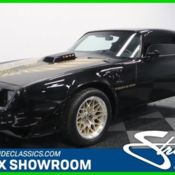 Now is your chance to be the baddest Bandit on the road. This 1980 Pontiac Firebird Trans Am might look like a nicely restored Special Edition car, but underneath the surface is a restomod with an upgraded A/C interior and modern fuel-injected LS V8 power. The truth is these cars never look better than when they're dressed in formal black with a tribute to Special Edition trim like this coupe. The black seems to highlight the aggressive shape, as well as all the sporty details like the fender vents, integrated spoiler, and shaker-style hood. Plus, the black is the perfect backdrop for the many gold-colored details that feel like they leap off the glossy bodywork. The Trans Am markings on the fenders and rear looks terrific, and that iconic hood bird makes the whole car worth its weight in gold. And if you look closely, you'll notice the deeply tinted windows and that the iconic snowflake-style wheels are larger than stock â€" offering little hints at the higher performance within. Open the door to an interior upgraded for comfort and performance. It starts with bucket seats that are custom-covered in a comfy cloth with the T/A logo bird stitched into the headrests. And we love how the custom door panels have a machine aluminum insert to match the dash. This is quite a comfortable coupe with an AM/FM/CD stereo, modern Pioneer speakers, center console, and ice-cold R134a air conditioning. And while the T/A's classic three-spoke steering wheel gives you a cool vintage feeling, the B&M shifter is another reminder that this is an upgraded machine. You might see the 4.9 callout on this T/A's shaker hood, but that's just to keep the classic/sleeper vibe of this coupe. Once you look under the hood, you see a modern 5.3-liter fuel-injected V8. This was installed in 2010, and we have the $8,000 receipt to document the quality upgrade. It all looks great packed into an engine bay that still had enough room left over for some interesting touches, such as the mean cold air intake air tube. But this Trans Am is more than just about a high-performance bite. For example, the 4L60E four-speed automatic transmission is not only stout enough for performance driving, but also it's an overdrive unit that is good for highway cruising. The same can be said for the front disc brakes and power steering. Plus, with sway bars front & rear and the grip of Nitto Extreme Performance tires, this is a restomod that truly handles. We have enough receipts from the last eight years to document that they invested nearly as much as the asking price in this coupe. That's why you know this cool and complete T/A is one heck of a deal. Don't miss out, call today!