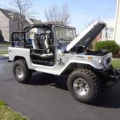 I have up for sale a 1974 Toyota FJ40. The guy I bought it from was driving it . He was layed off work so started to tear it apart to restore. It's suppose to be pretty much all here. I was told the engine is a 350 4 bolt main, ut didn't verify that. Has the original trans, ard doors and soft, oft top, he top seems brittle. The fenders and hood are just setting there not bolted. Frame is solid, he front floor pans need replaced, he rear is pretty solid. This would be a good restore project or just put back together and drive it. These older fj40s are getting hard to find. I do have the windshield. Sold as is you are welcome to come look before auction ends.