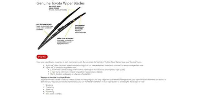 Genuine ToyotaOEM StyleSightline Wiper Blade Set