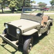 1947 WILLYS CJ2A VIN NUMBER CJ2A 95528...TOTALLY REBUILT... Drive it home if you would like. It is NOT A WWII jeep, It is a Willys CJ, civilian jeep. And is dressed like his big brother, with 45th Infantry Division markings with Invasion Stars which the 45th earned in WWII.It has been totally rebuilt, with all new, or rebuilt units and some original pieces, such as original front seat frames, speedo, (which had 13,743 miles on it), grill. Zero rust, Drive train was completely rebuilt, engine (late WWII buy back), tranny-transfercase, clutch, front and rear ends, totally new brakes, new shocks, five new 16 inch wheels with new six ply NDT tires and tubes, new body, fenders, WWII hood, WWII windshield, WWII body handles, WWII spare tire rack, jerry can (new usable), WWII bumperettes, WWII duel tandem windshield wipers, WWII fender black out fender light, WWII windshield hold down latches, WWII tail lights