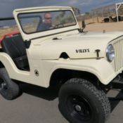 Inside the gray corduroy cloth is exactly how you'd feel these came from the factory. So it's great to see it nicely presented on the seats and door panels. The tall greenhouse, tilt-out windshield, and light wood on the steering wheel makes this a pleasant place to be. Driving is easy going with a conventional setup that includes a floor-mounted three-speed, and we know you love the look of the pearl shift knob. Plus, this had the best in readouts of the day where you have a cool barrel-style speedometer as well as readouts for oil pressure and power.